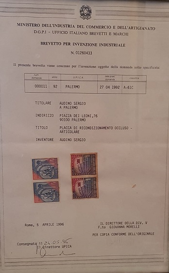 Tali dispositivi per la terapia delle disfunzioni cranio-mandibolari furono successivamente pubblicati e presentati dall’Autore in varie altre Sedi Congressuali ed in particolare nel settembre dello stesso anno (1992) a Firenze alla S.I.D.O., a Parma all'O.R.T.E.C., ed a Nancy in Francia nel corso delle "Giornate Francesi di Gnatologia", riscuotendo molto successo ed interesse nel mondo scientifico. Le due placche furono contestualmente Brevettate a nome dell'Autore Dr. Sergio Audino (Inventore) con Brevetto per Invenzione Industriale n°01260433 registrato presso il Ministero dell'Industria del Commercio e dell'Artigianato D.G.P.I. - Ufficio Italiano Brevetti e Marchi di cui alla domanda n°000011 anno 92 U.P.I.C.A. Palermo con domanda del 27/04/92 classifica A-61C, rilasciato il 05/04/96 e sottoposte a copyright internazionale non oneroso.